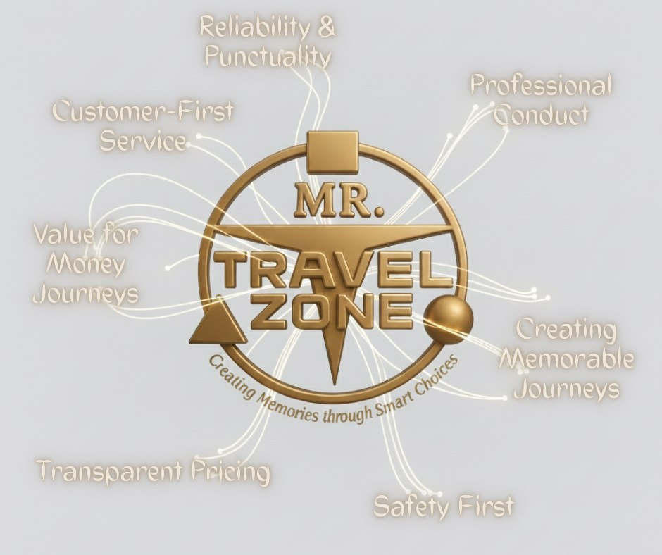 At MR. TRAVEL ZONE, every journey we create is built on principles we genuinely believe in. These 7 Core Values guide every ride, every interaction, and every decision we make.